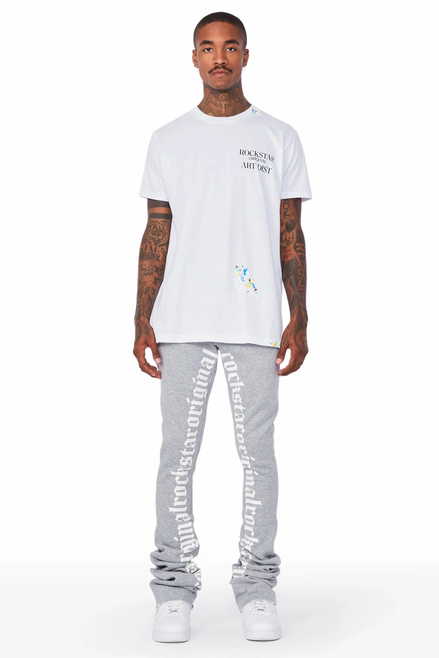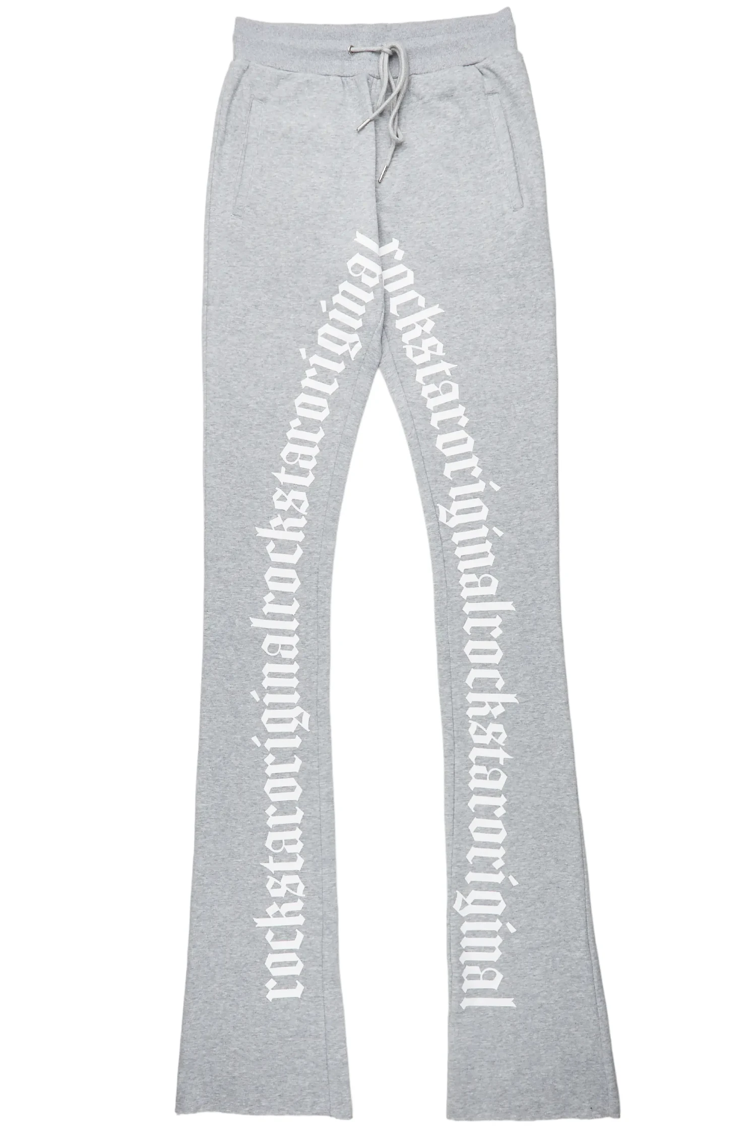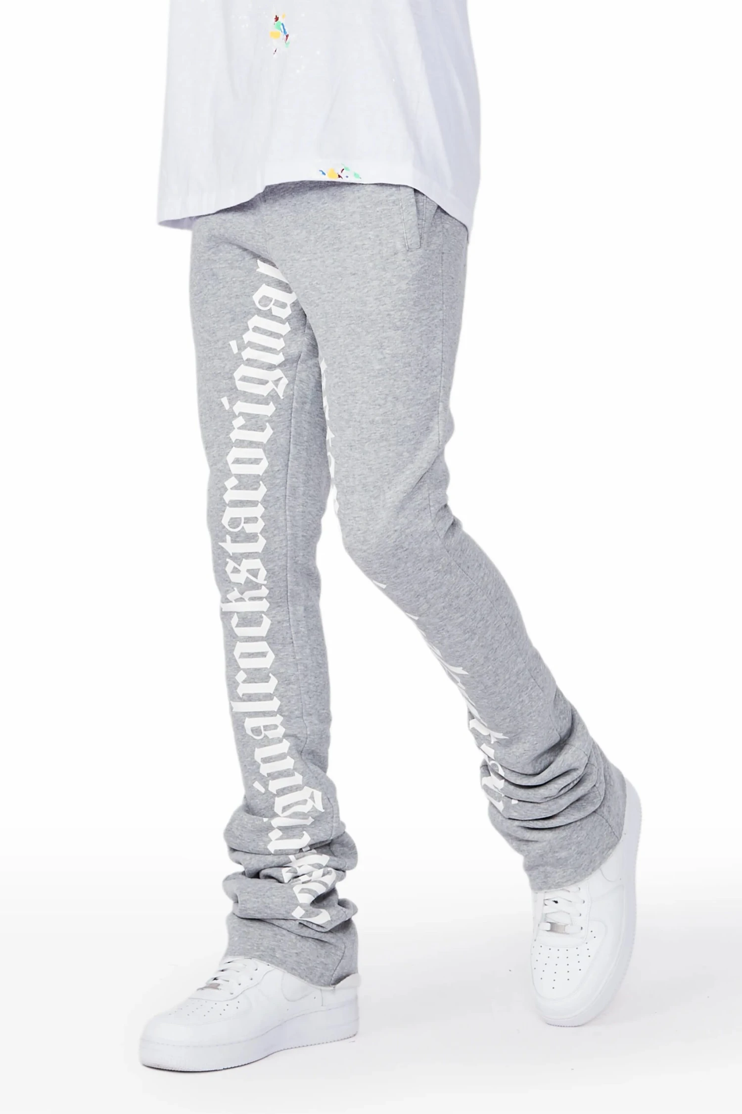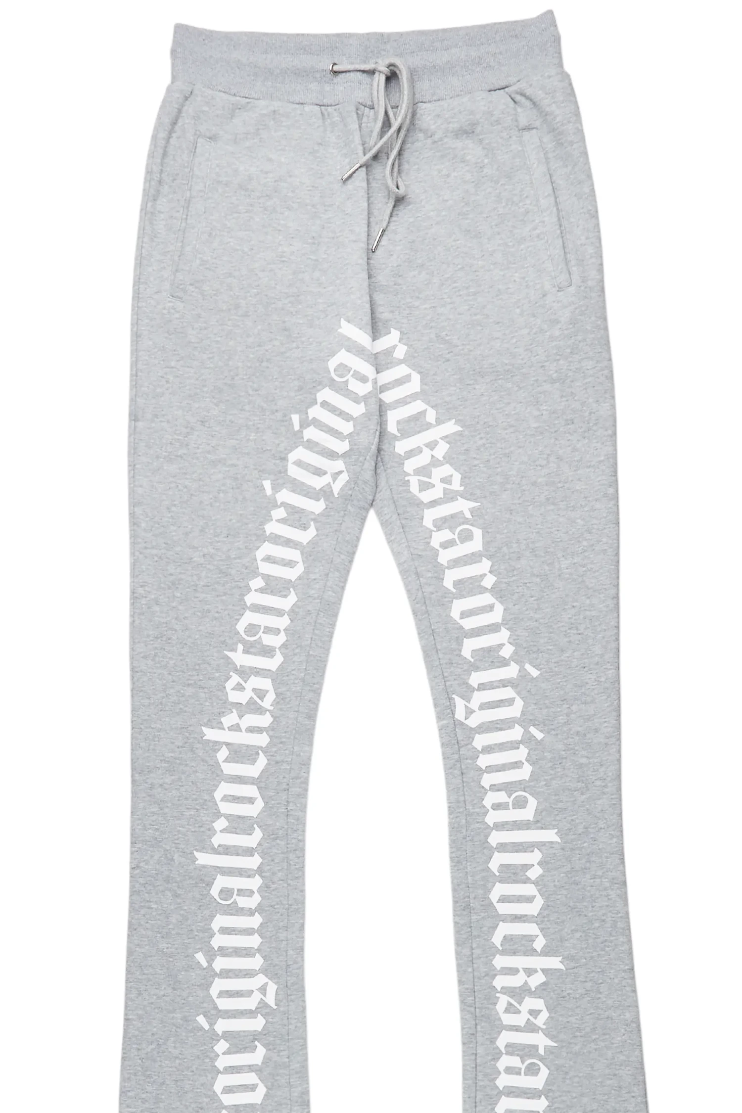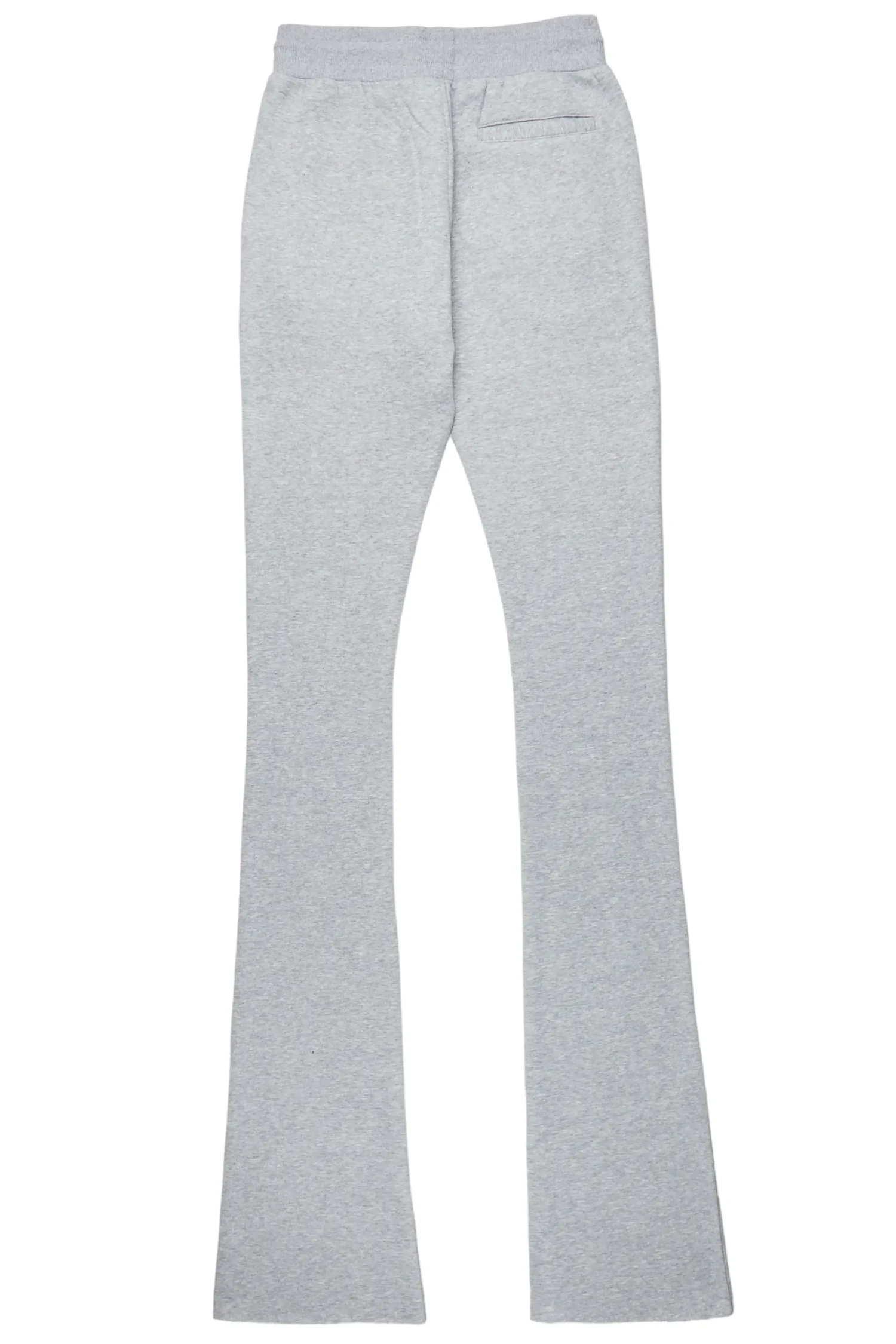 A pair of contemporary super stacked track pants for men in heather grey. Designed with ultra soft organic cotton and extended legs for a must-cop loungewear style.