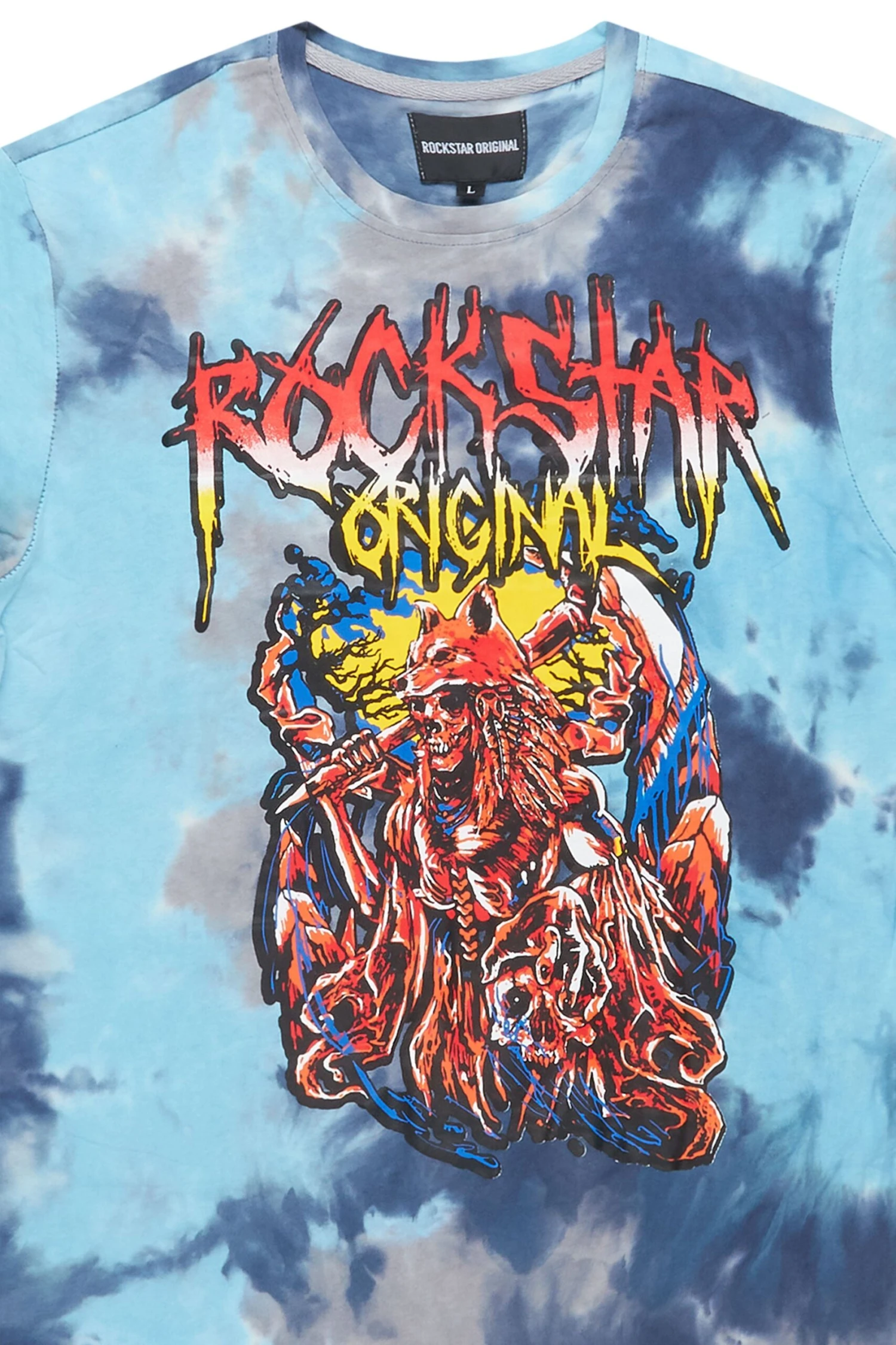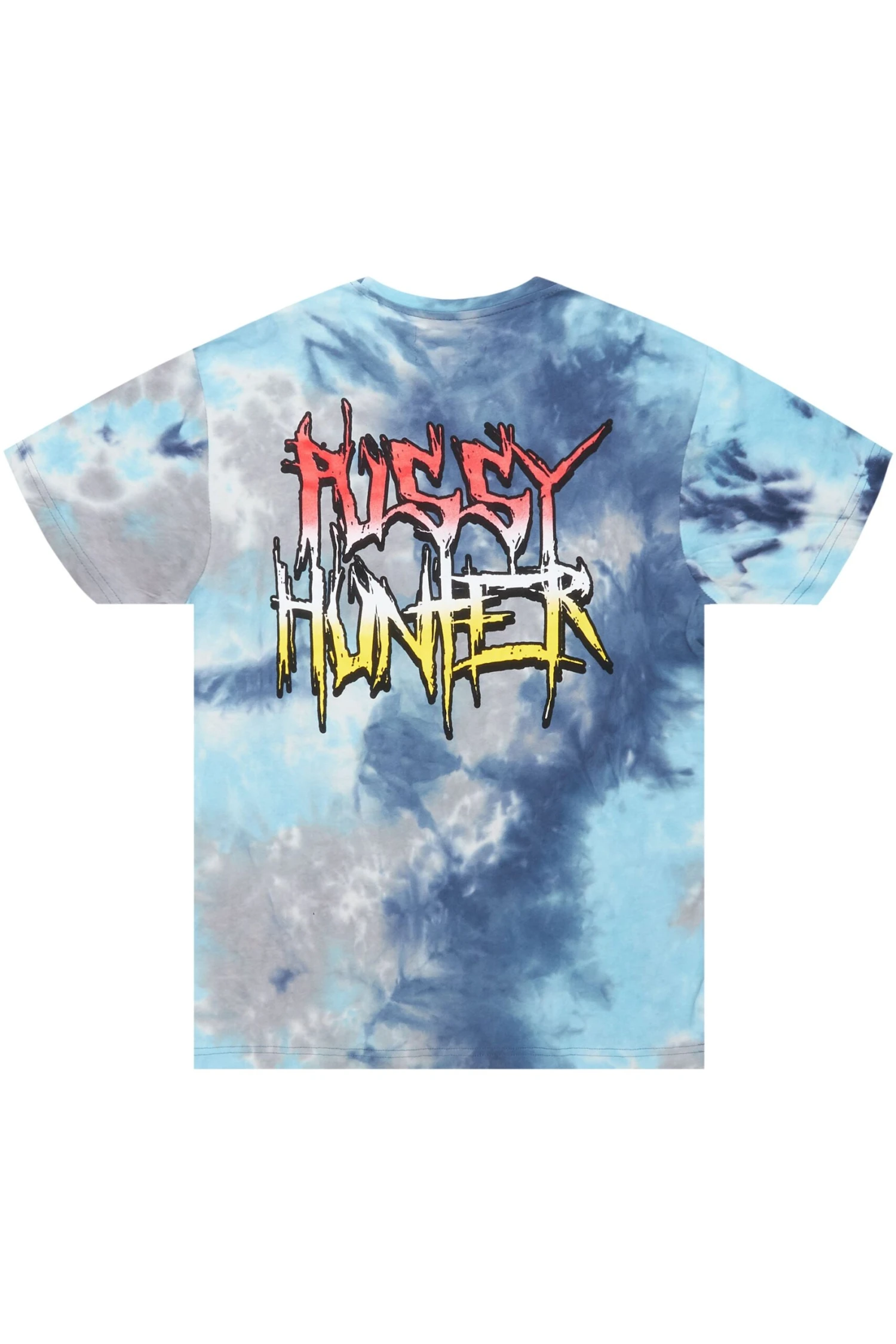 An urban streetwear tee for men in tie dye blue. Designed with organic cotton and a relaxed-fit for a versatile style.