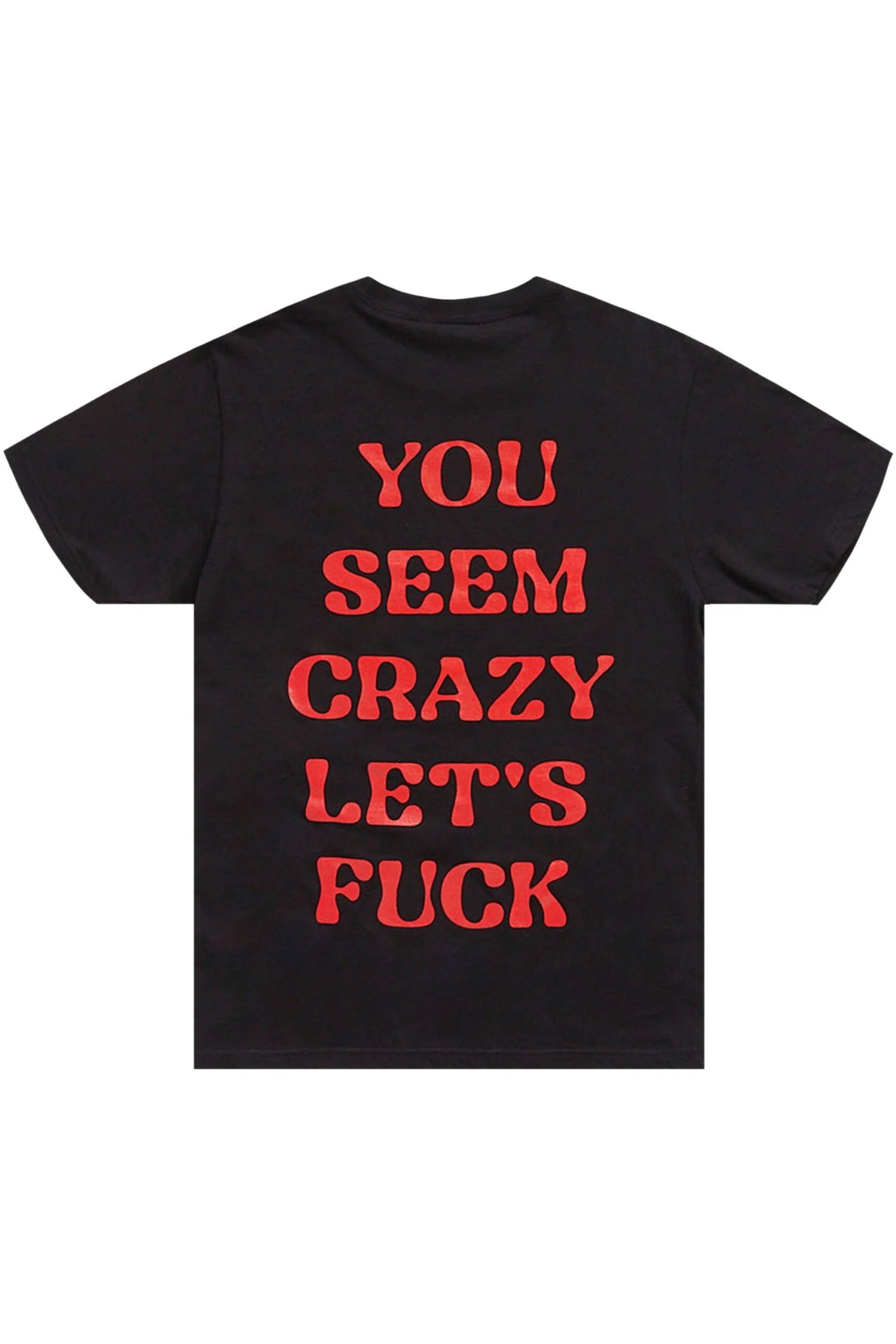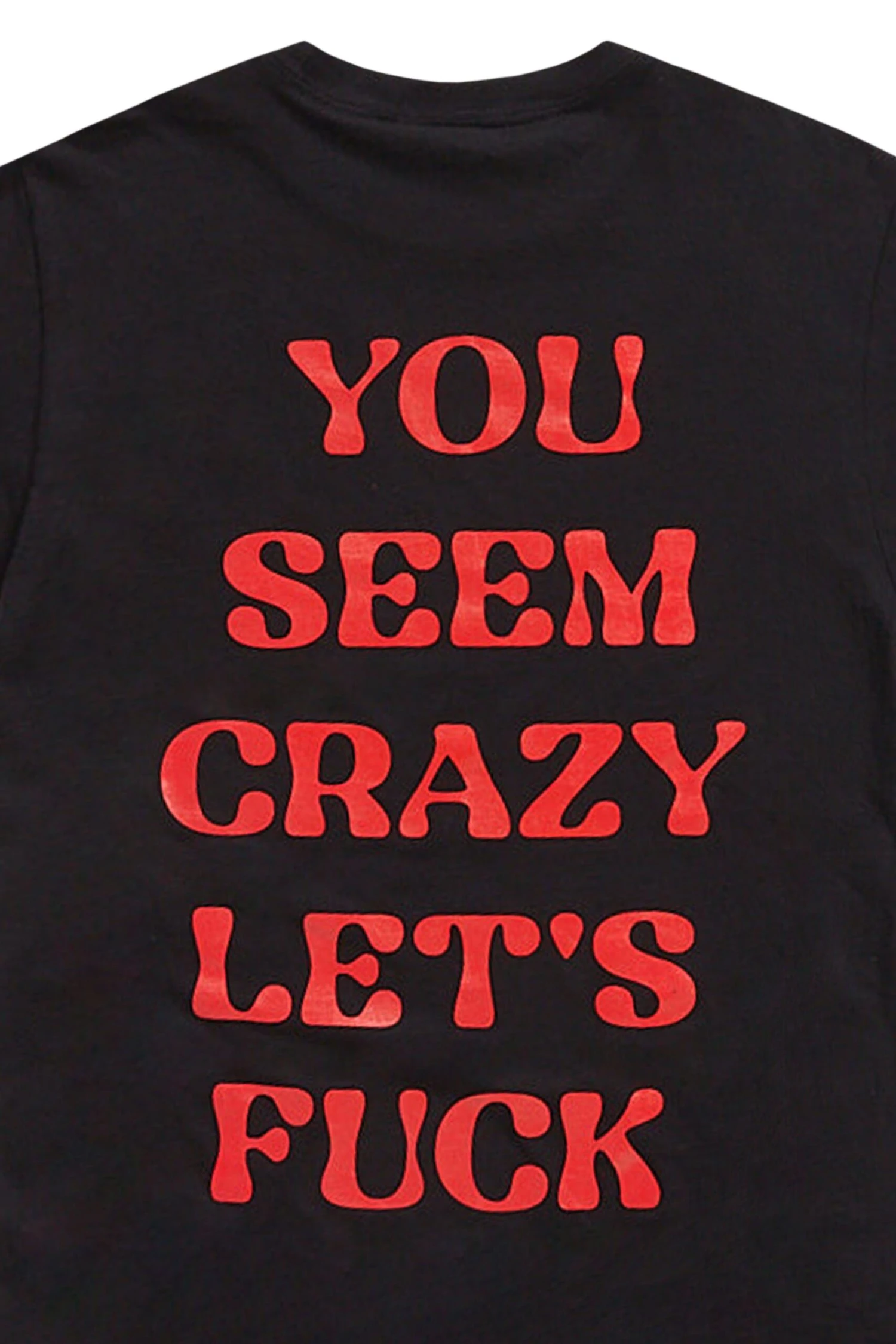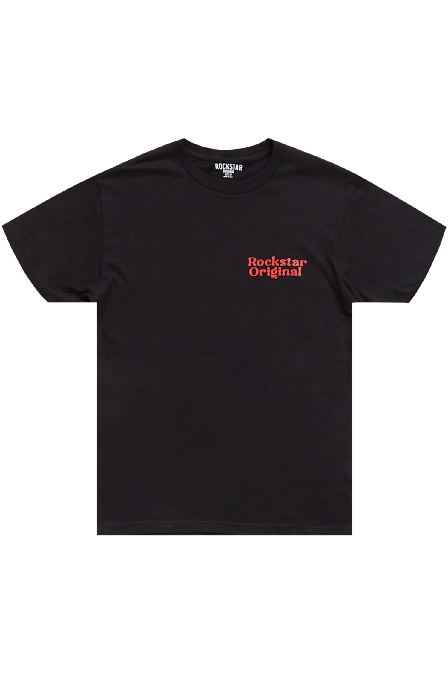 An urban streetwear t-shirt for men in black. Designed with organic cotton and a graphic statement logo for a must-cop staple piece.