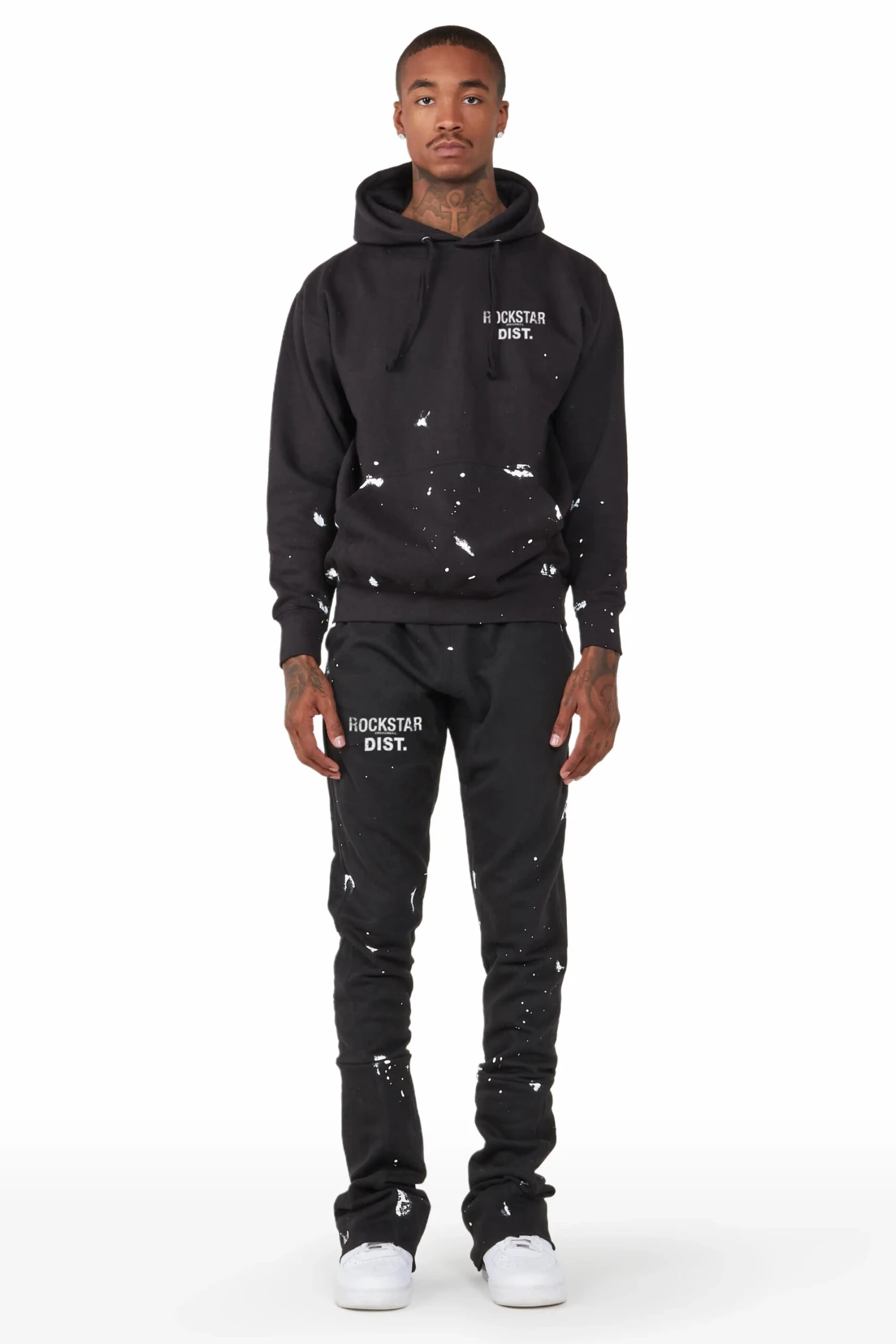 A pair of contemporary super stacked track pants for men in black. Designed with ultra soft organic cotton for the perfect everyday style.