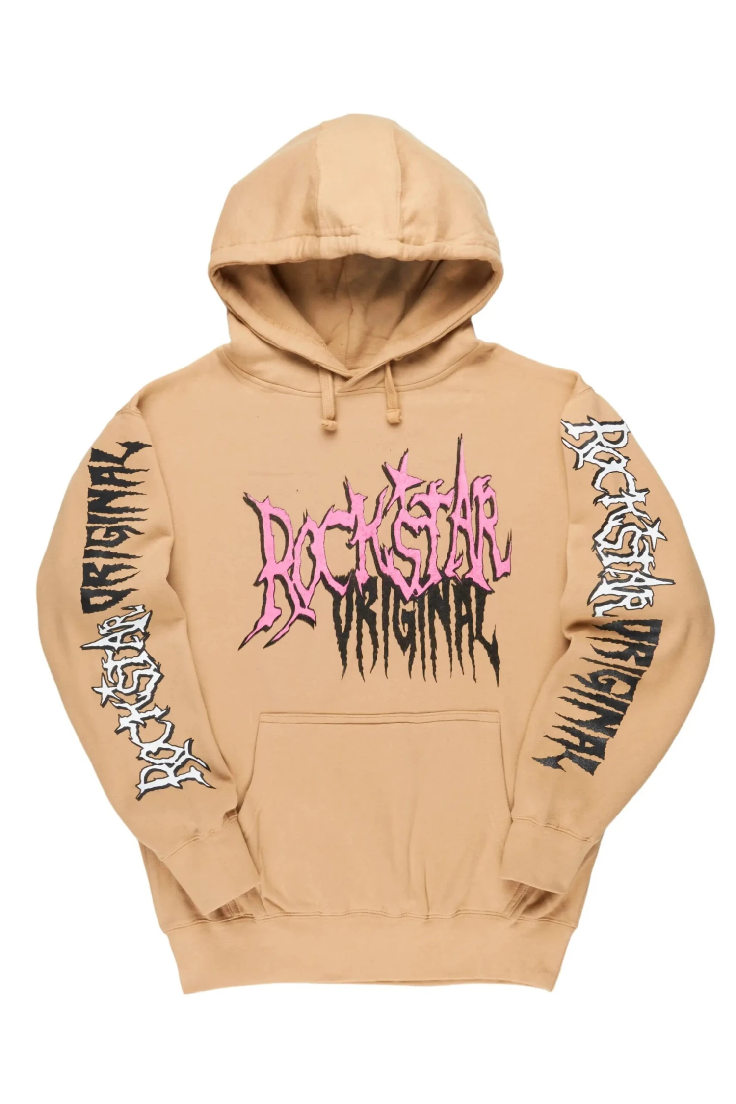 An urban streetwear hoodie for men in beige. Designed with organic cotton and custom detailing for a must-cop staple piece.
