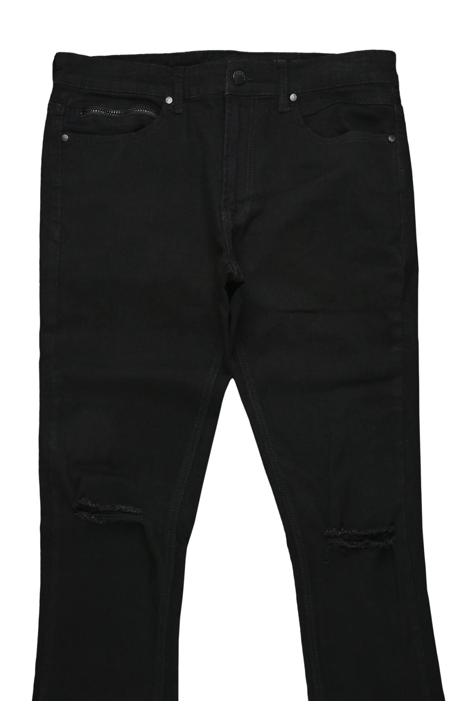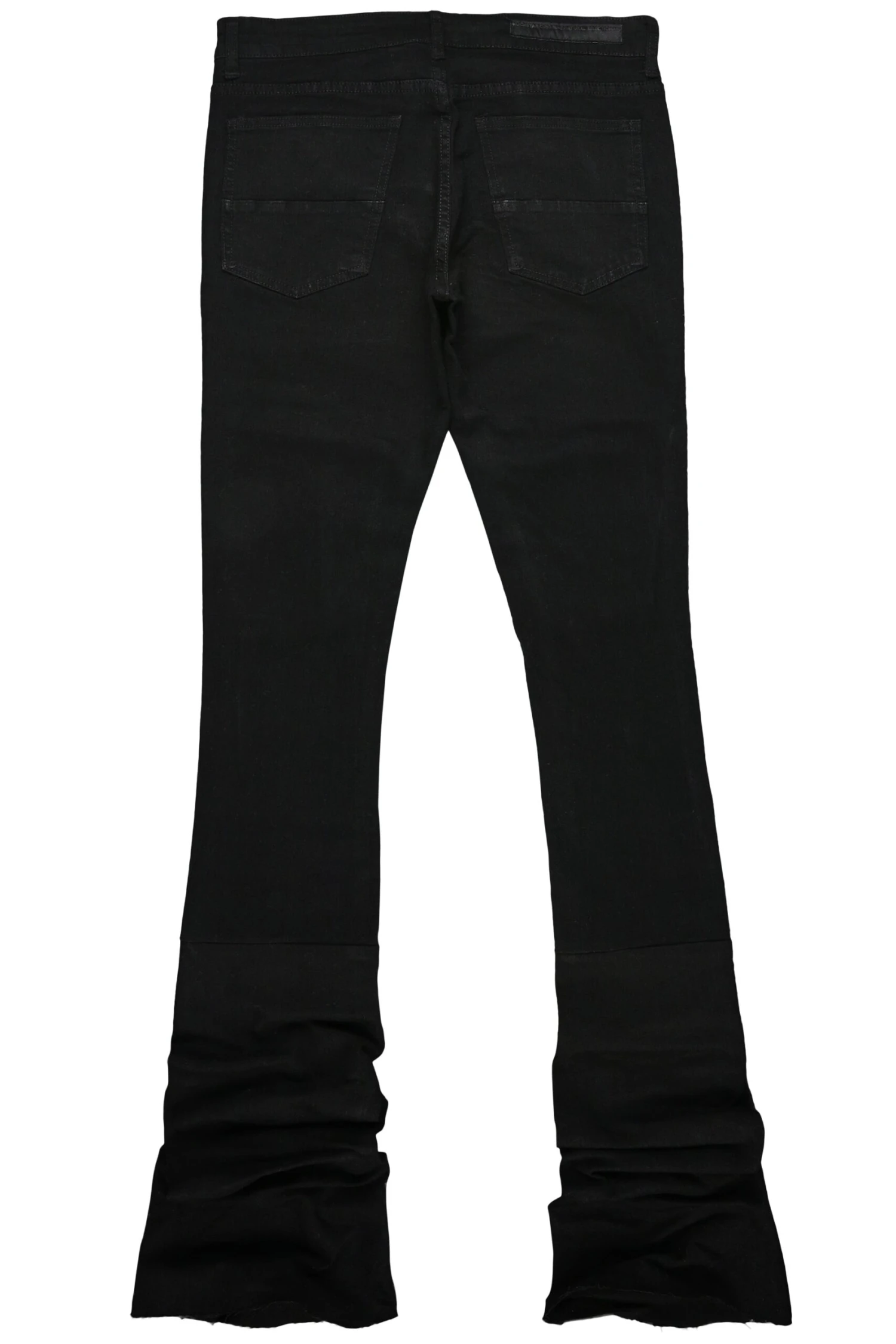 A pair of contemporary super stacked denim jeans for men in black. Designed with organic cotton for the perfect everyday style.