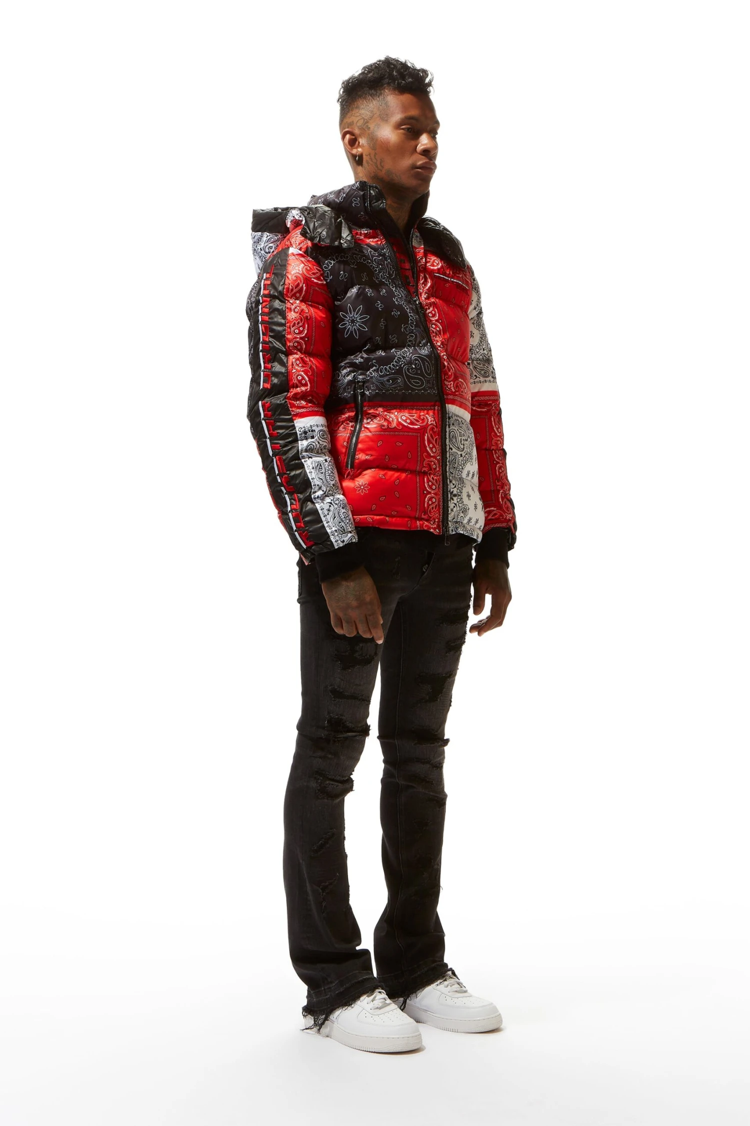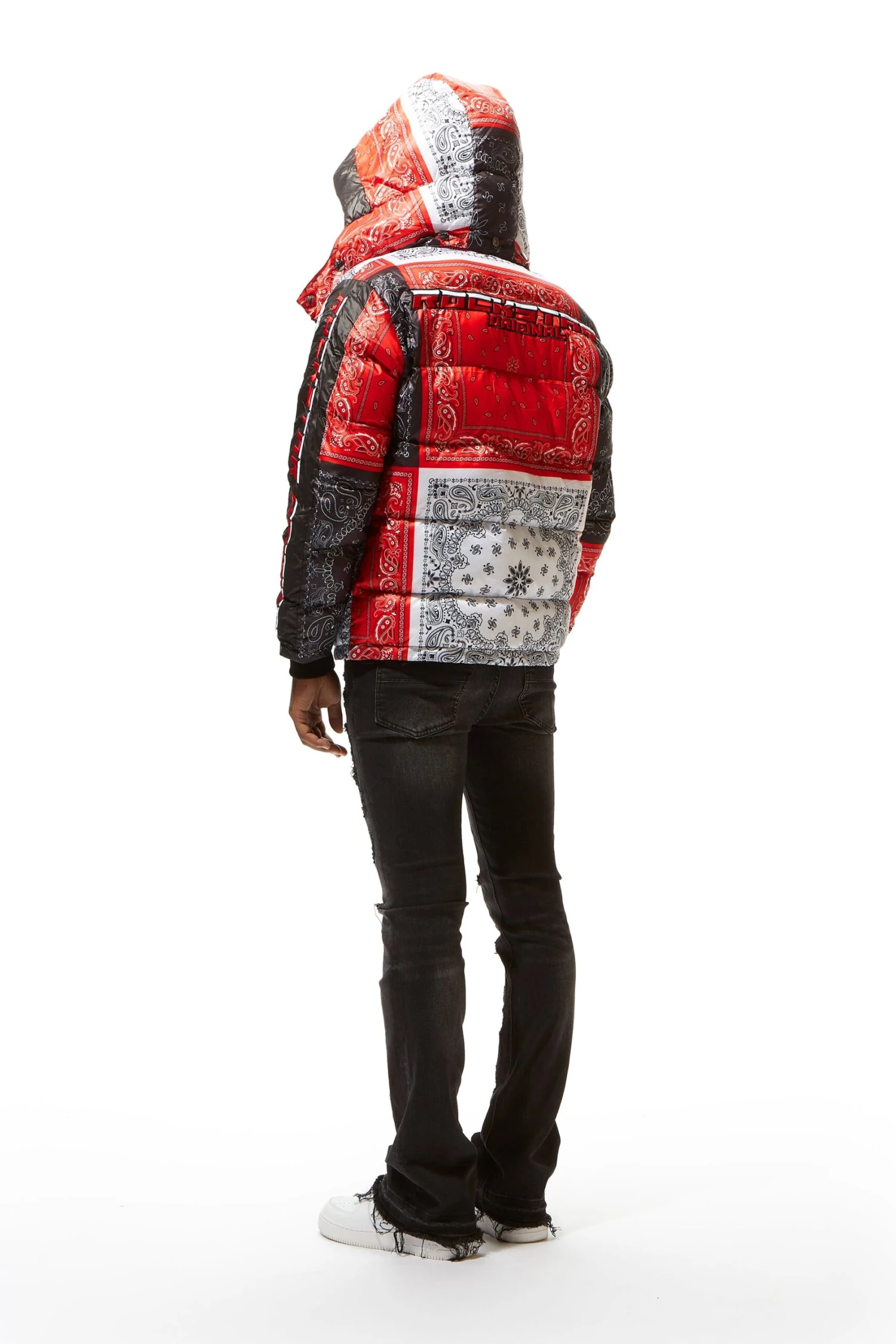 A down-filled, quilted puffer jacket for men in red. Designed with water-resistant fabric for optimal warmth.