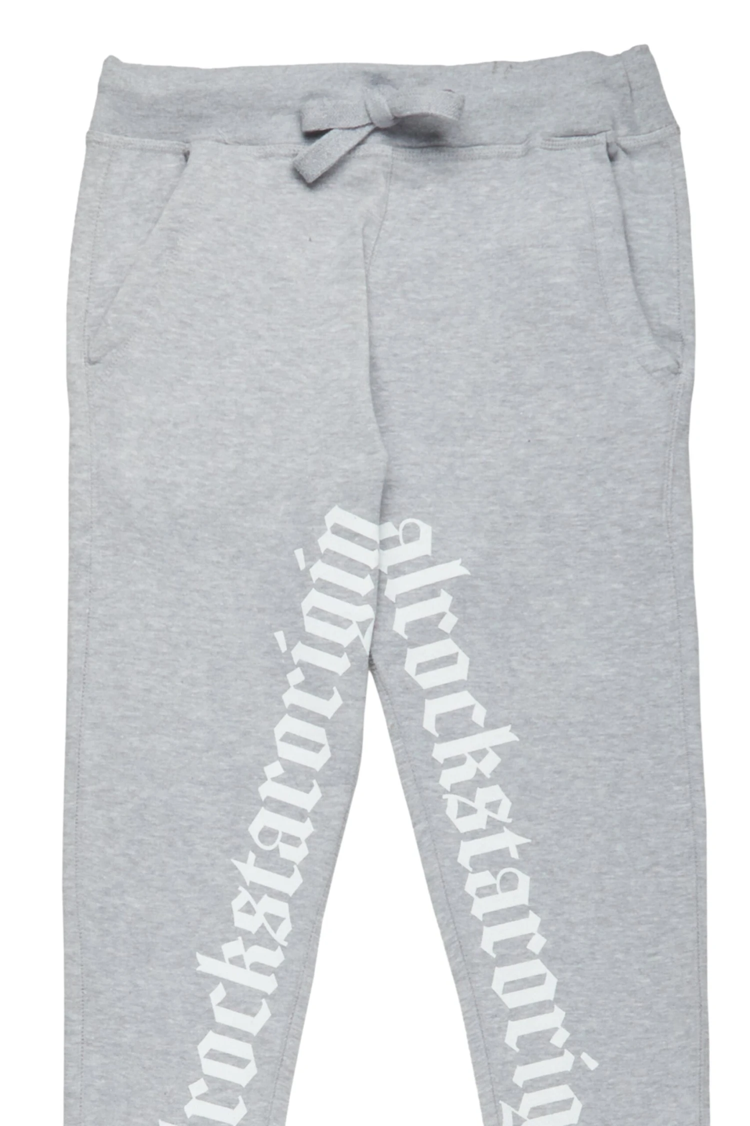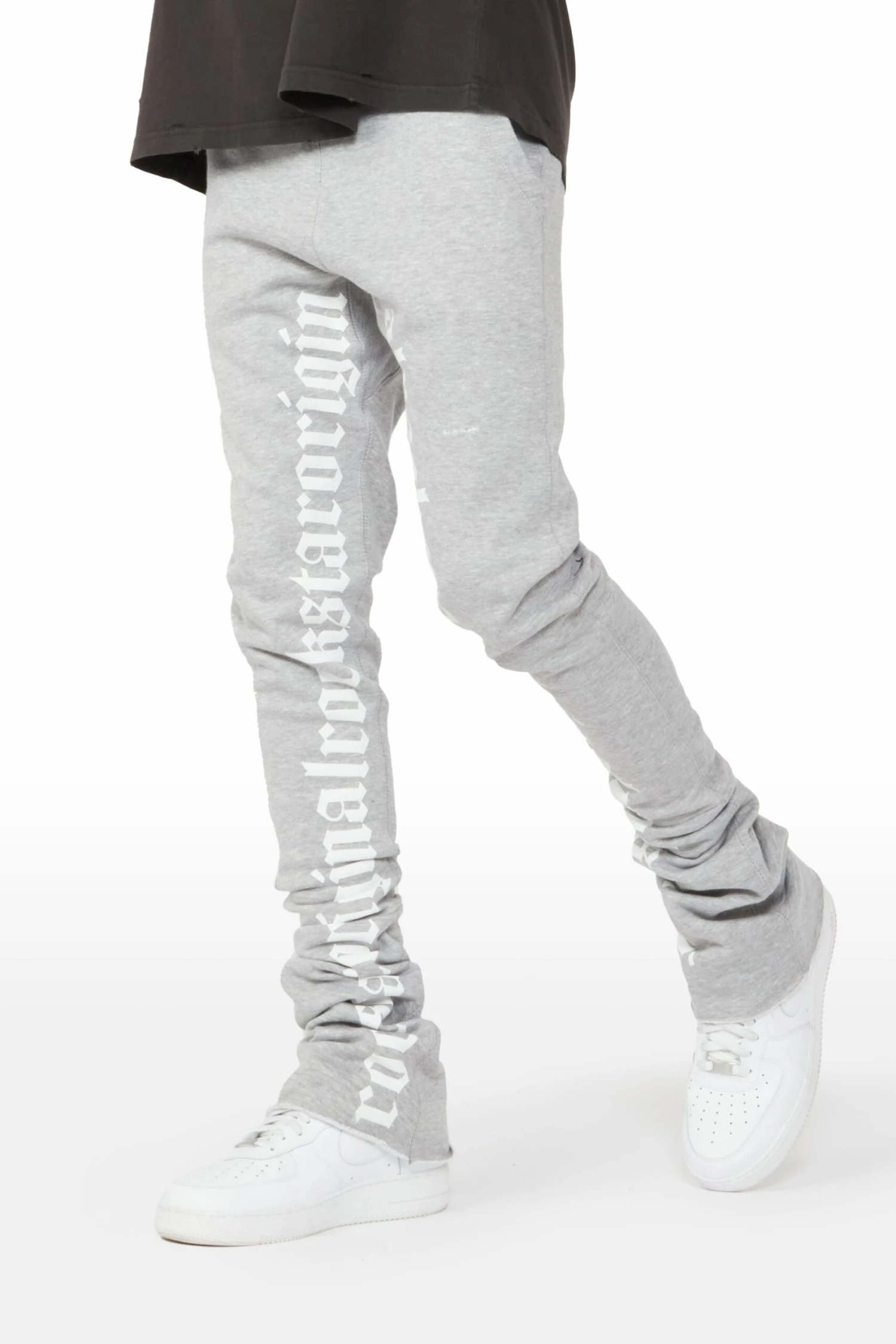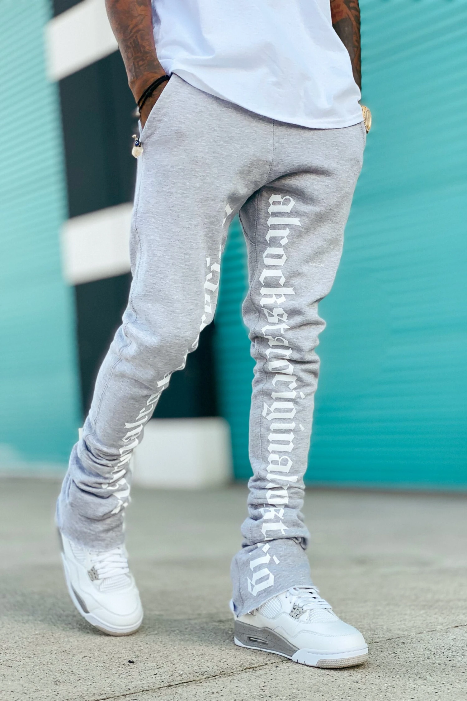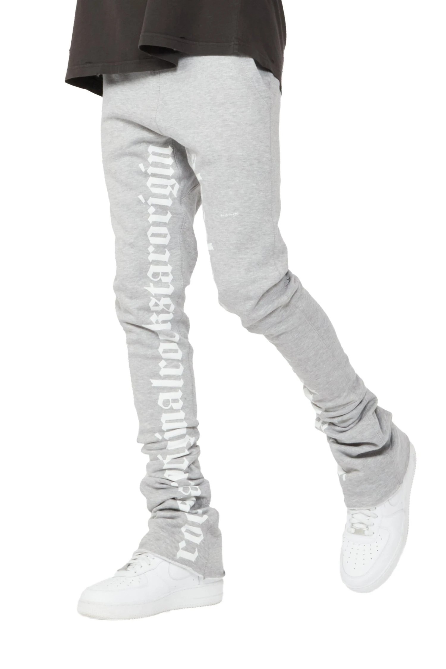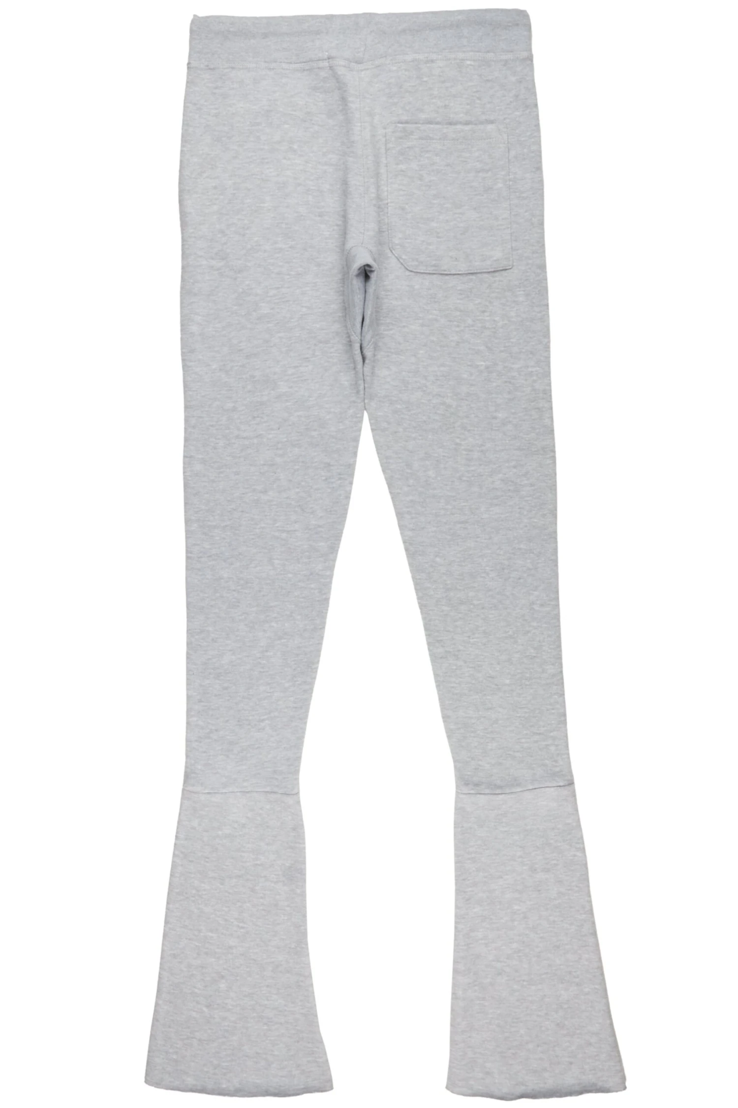 A pair of contemporary super stacked track pants for men in grey. Designed with ultra soft organic cotton for the perfect everyday style.