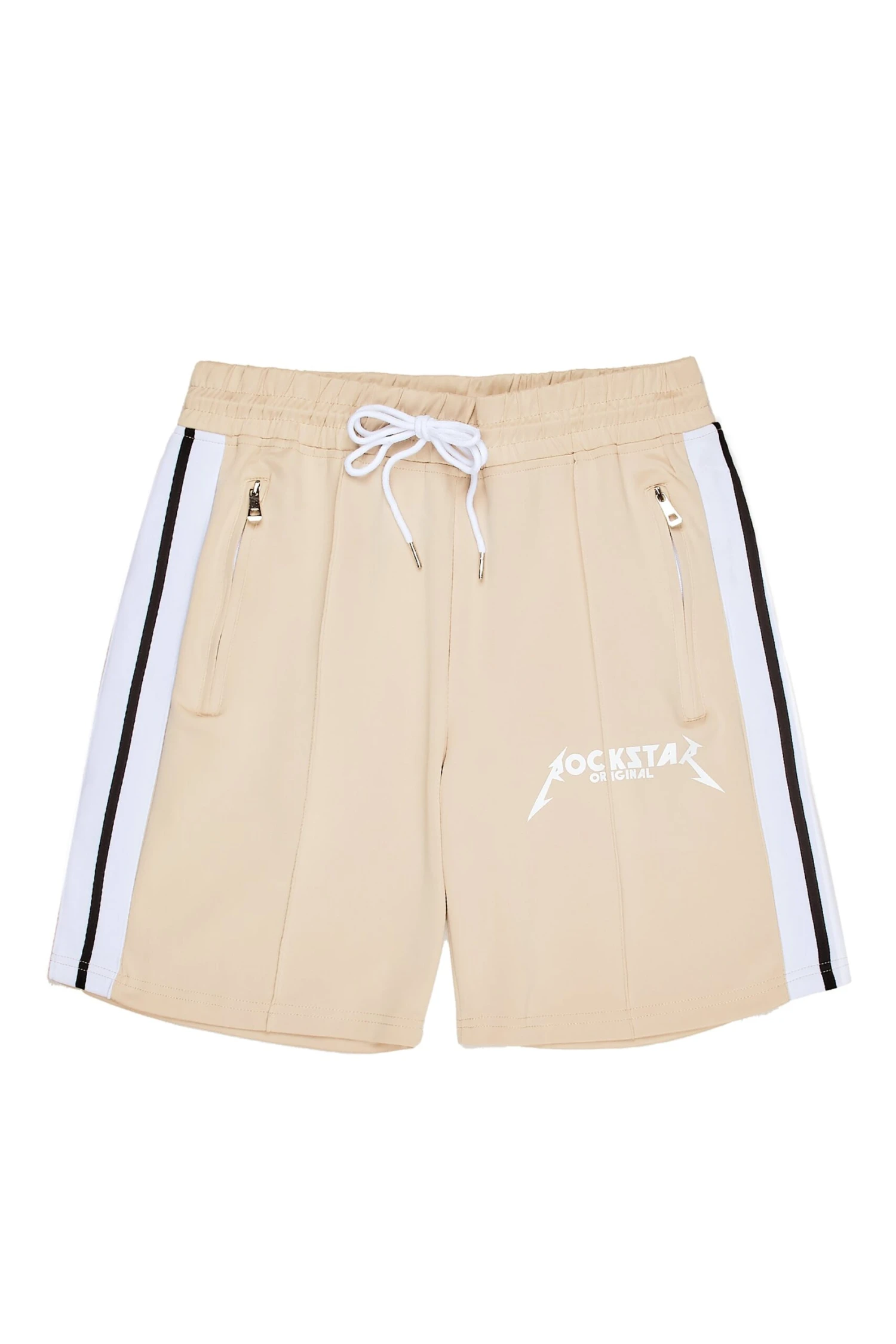 Rockstar Original Men’s short in beige. Featuring a printed RSO logo on the leg with embroidered side stripe details. Accenting a ribbed drawstring waistband with high-quality zipper pockets and a relaxed fit.