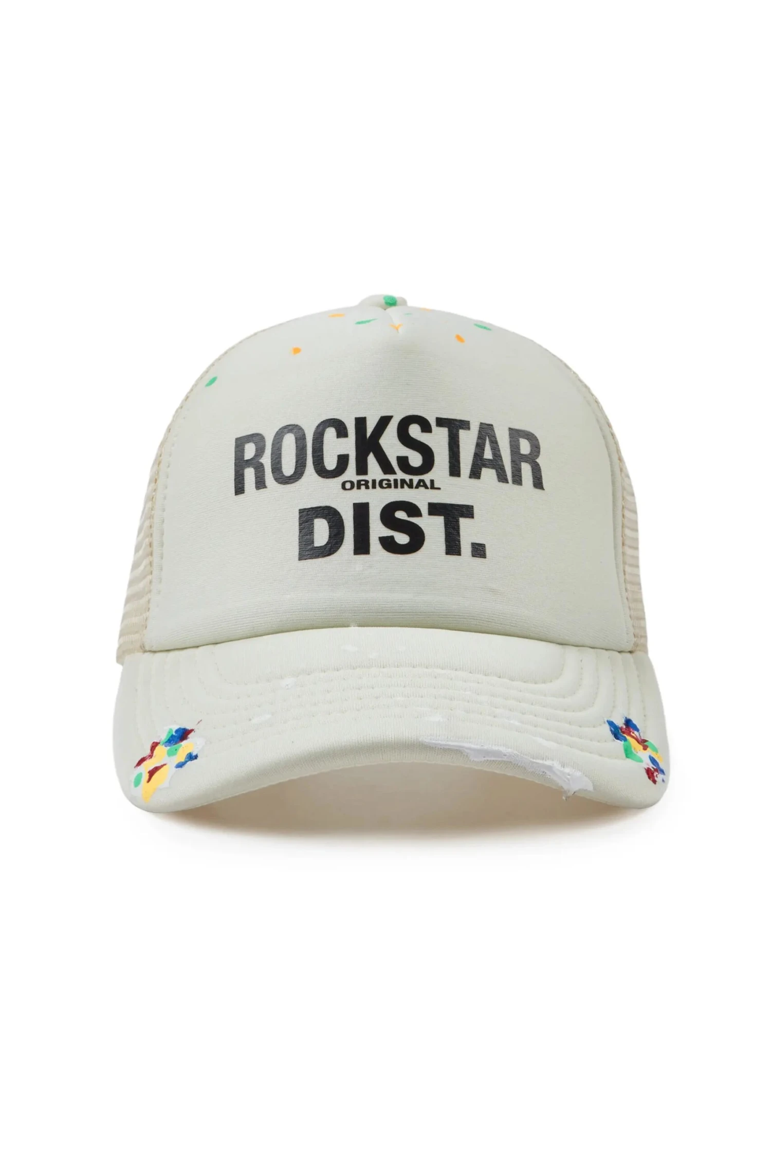 A light-structured trucker hat for men in stone. Designed with mesh backing and a traditional ball-cap fit for a versatile accessory.