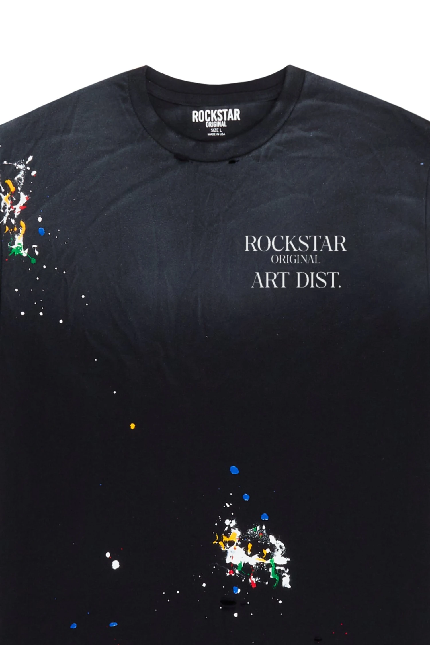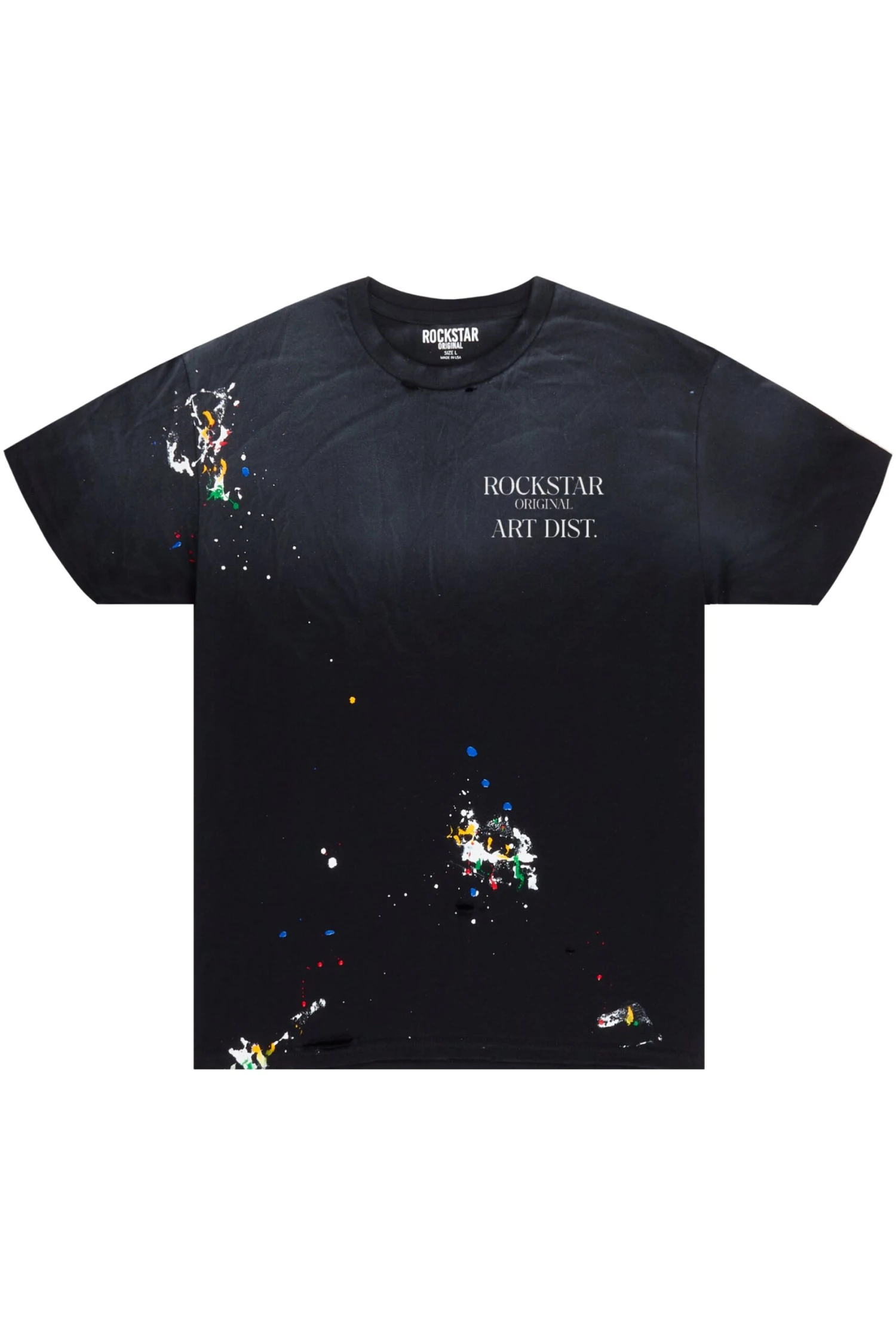 An organic cotton t-shirt for men in black. Designed with a worn-in wash and custom paint detailing for the perfect staple piece tee.
