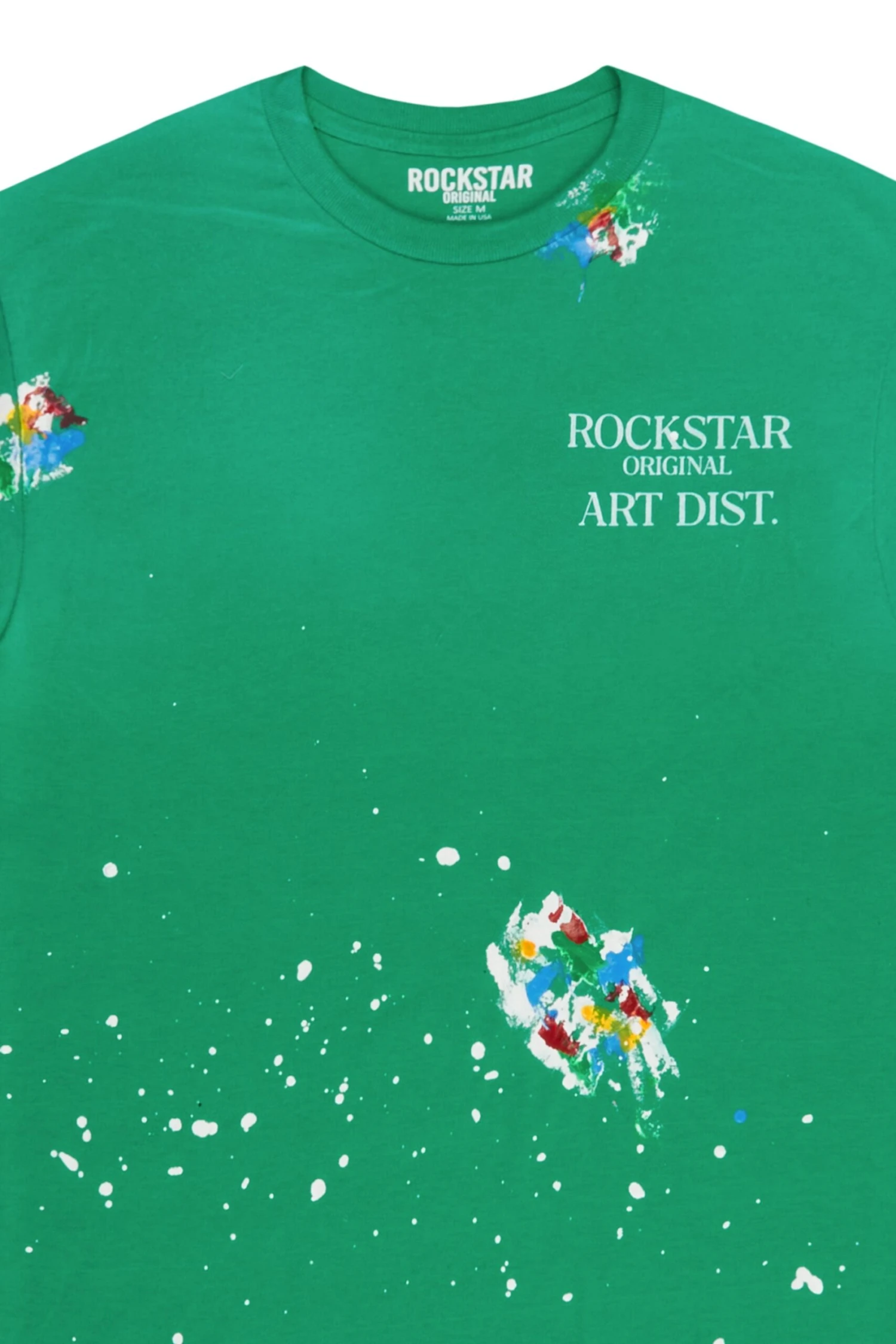 An organic cotton t-shirt for men in light green. Designed with a worn-in wash and custom paint detailing for the perfect staple piece tee.