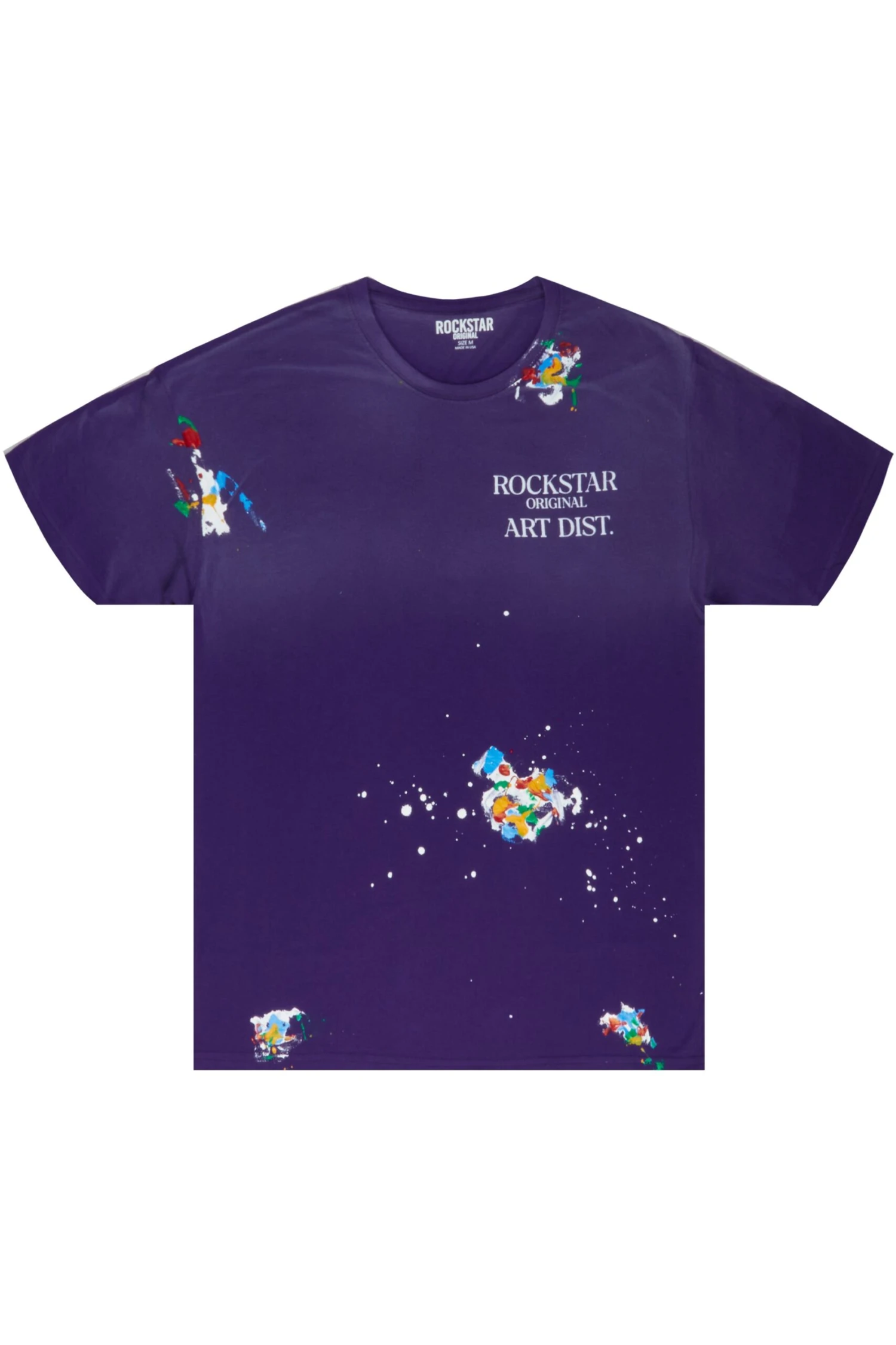 An organic cotton t-shirt for men in purple. Designed with a worn-in wash and custom paint detailing for the perfect staple piece tee.