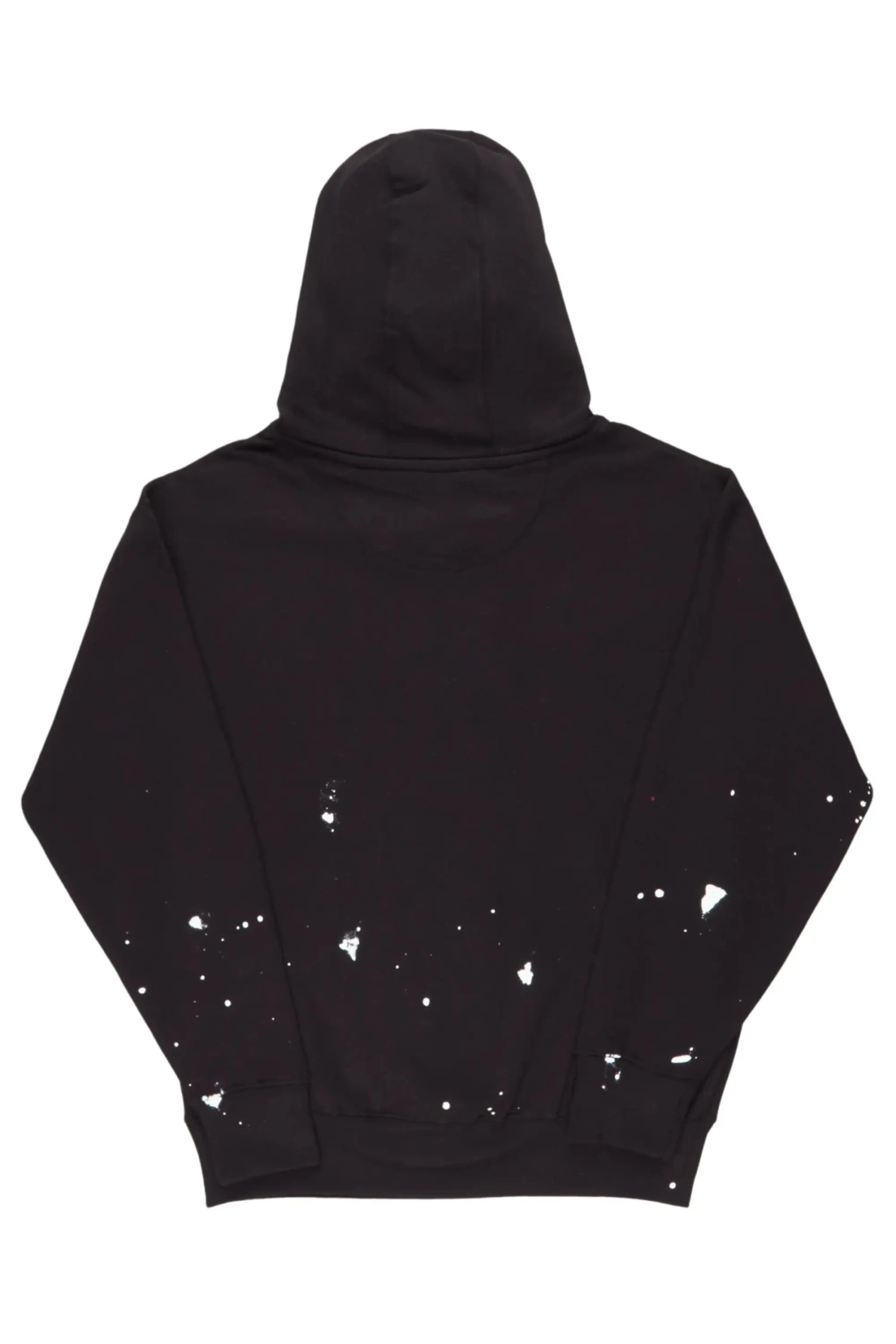 An urban hoodie for men in black. Designed with organic cotton and custom splatter paint for the perfect vintage-inspired staple piece.