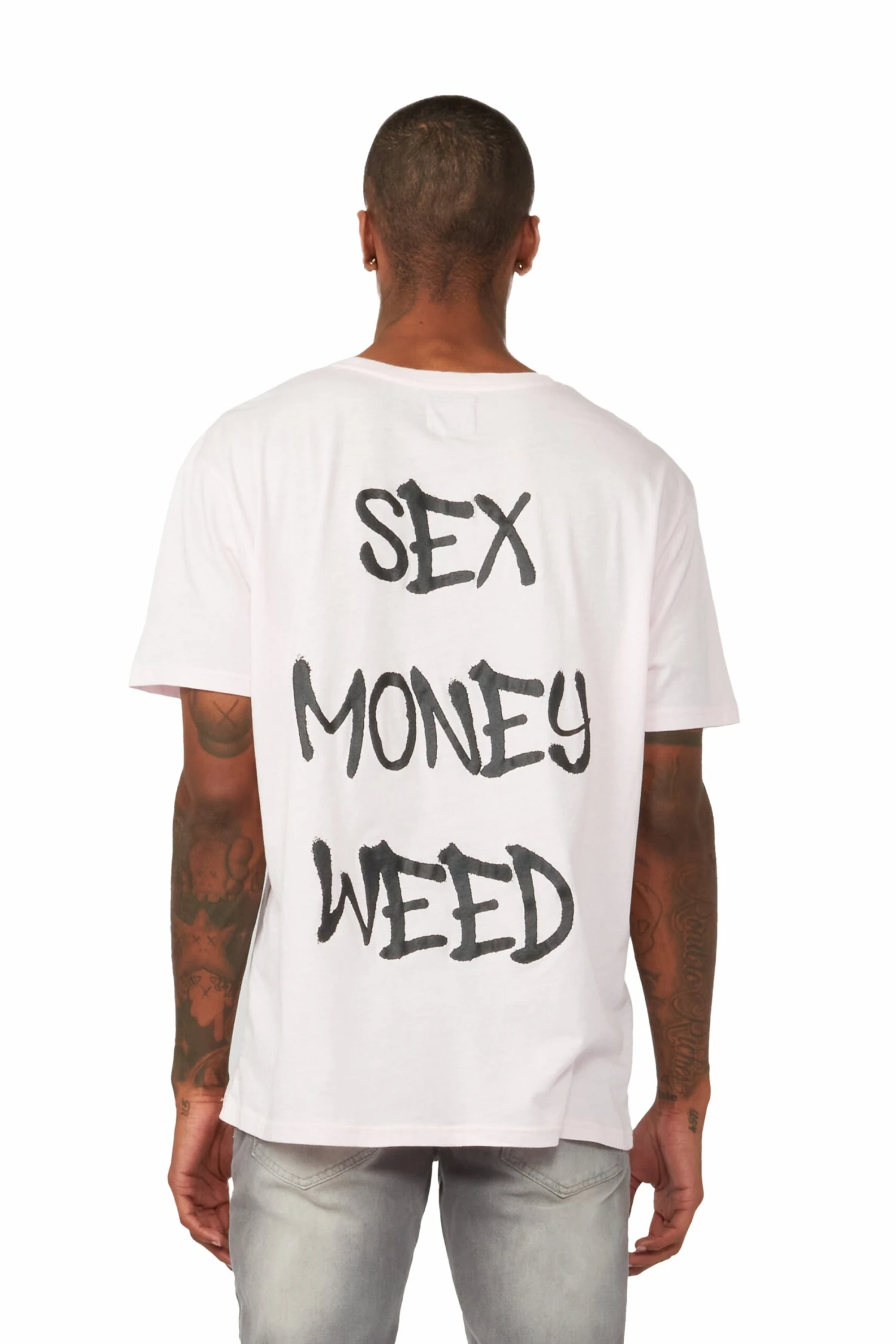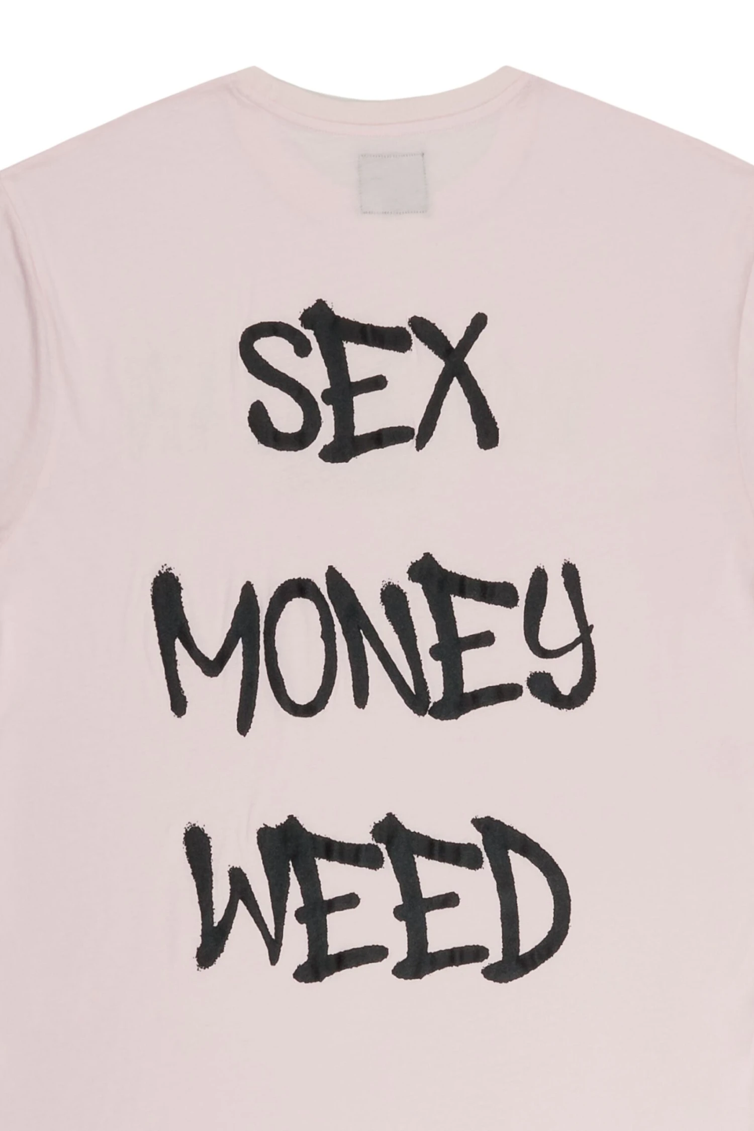 A classic tee for men in pink. Designed with organic cotton and a graphic logo on the back for a must-cop staple piece.
