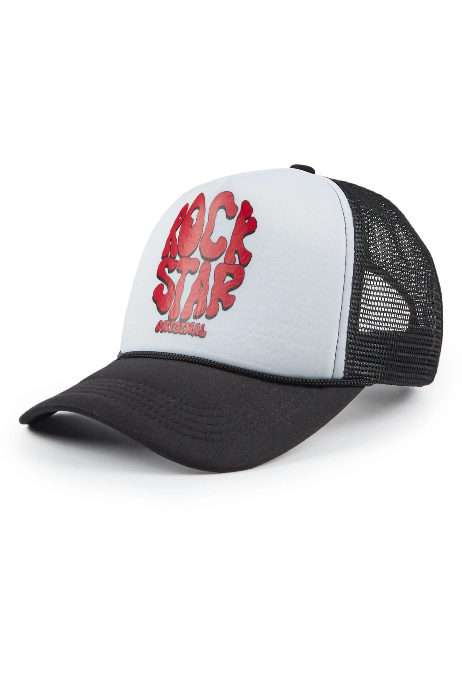 A light-structured trucker hat for men in black. Designed with mesh backing and a traditional ball-cap fit for a versatile accessory.